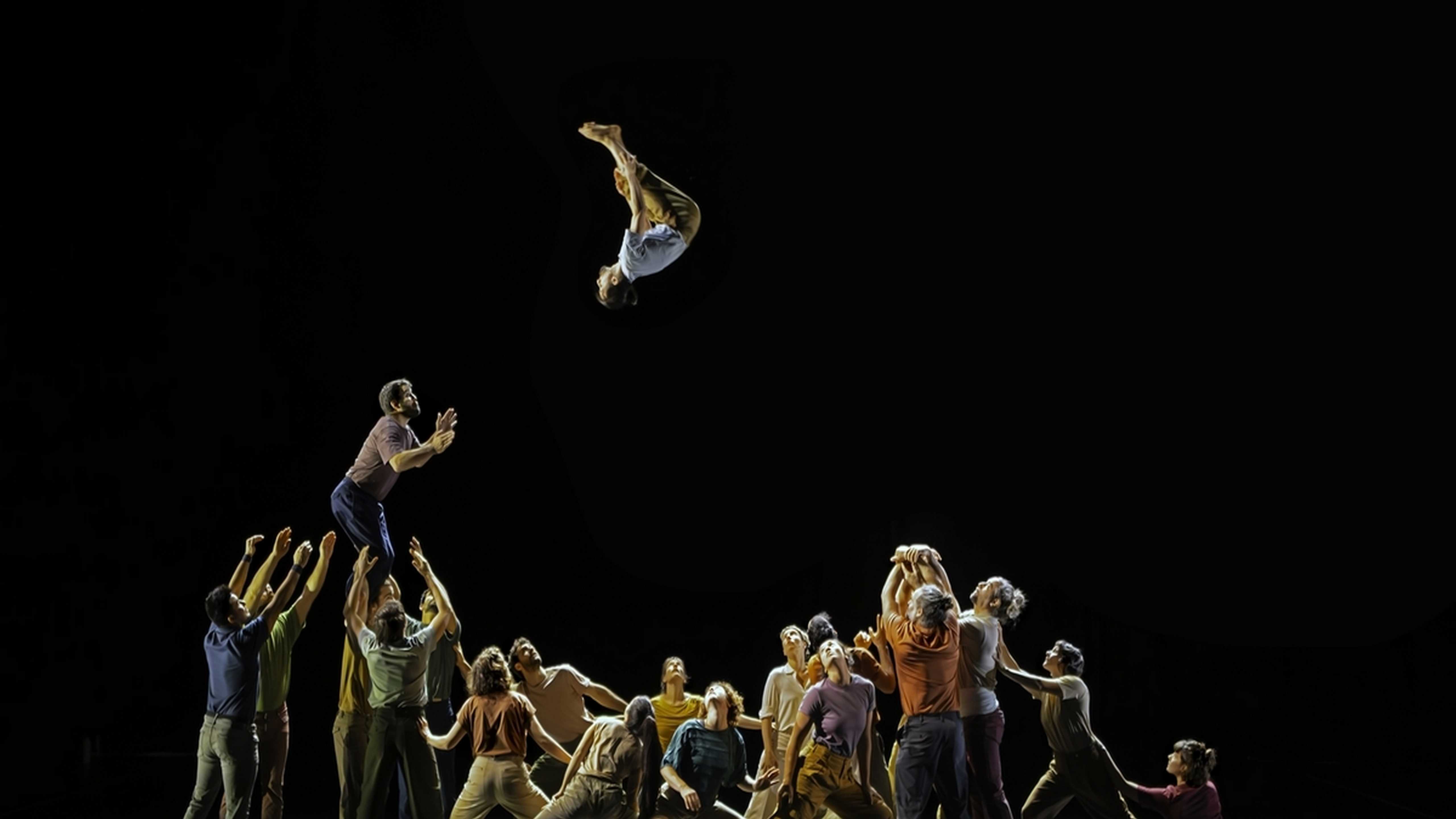 Avez-vous déjà contemplé un paysage de montagnes sculptées dans des corps en équilibre ? Sauriez-vous distinguer le ressac des vagues provoqué par le souffle d’une troupe d’acrobates lancée en plein course ? Tissée de tableaux animés et poétiques, la nouvelle création du collectif XY, invitée au FAB 2025 s’éprouve tous sens aux aguets. Guidés par la voix de deux chanteuses, jouant avec les éclats de lumière, les artistes se métamorphosent et épousent les rythmes de la nature dans une sidérante symbiose, tout en souffle, en équilibre et en vibrations.